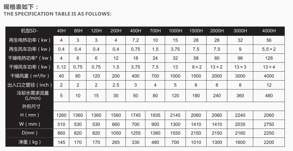 注: (1)干燥風(fēng)的點(diǎn)溫度≥-20°C ,都能完全充分干燥塑膠原料
